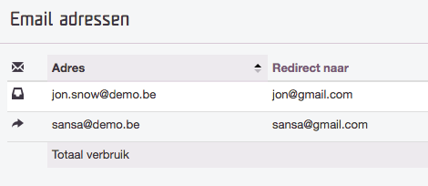 - Forwarder (identified by the arrow in the table): The emails are forwarded and then deleted from our systems afterwards.