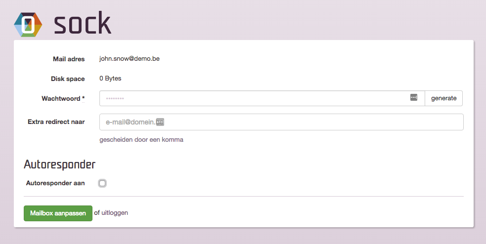 Log in to our Sock control panel with the details of your e-mail account (these are the same as for your webmail).