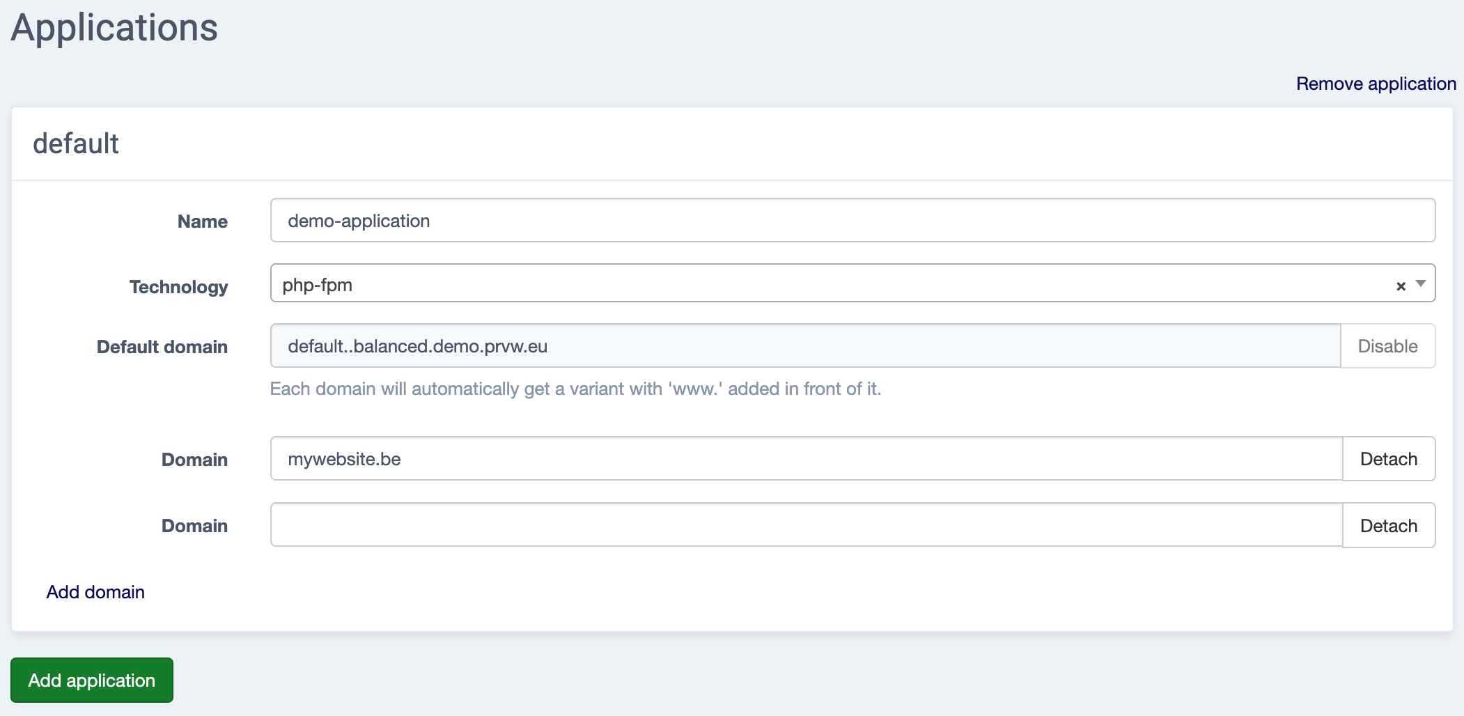 Default domain - this preview domain is added by default, and can be removed once the application is created