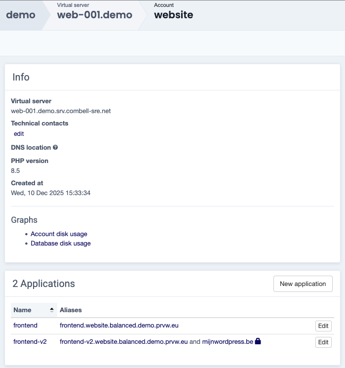 Splitting up applications into different accounts also allows for selecting a different PHP version per account.