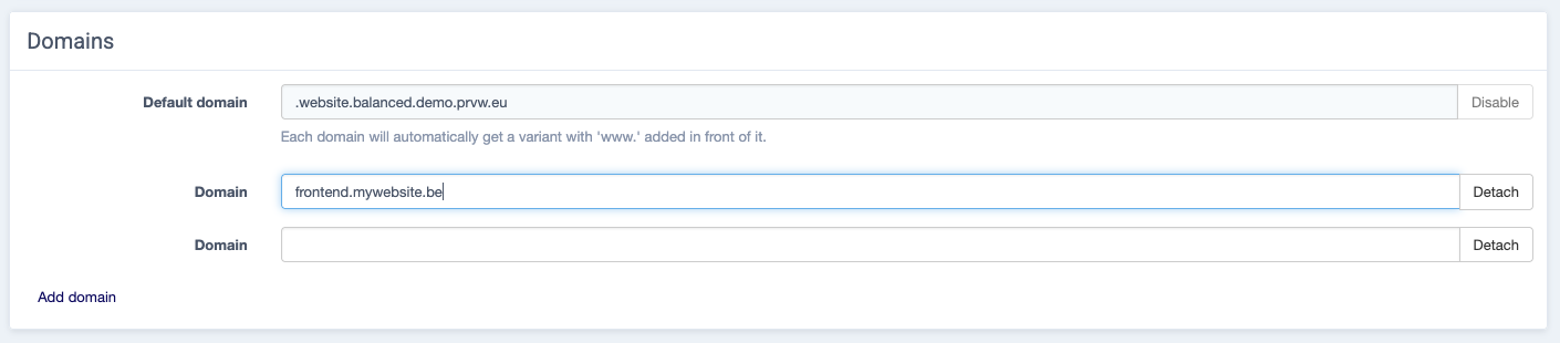 Add the domain(s) that need to be linked to this application in the Domains section.