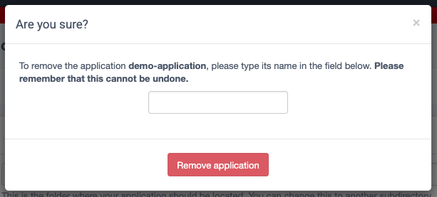 Enter the name of the application, and confirm with Remove application.