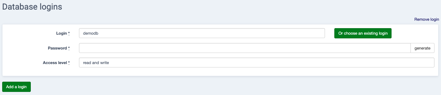 Additional database users can be added via Add a login.