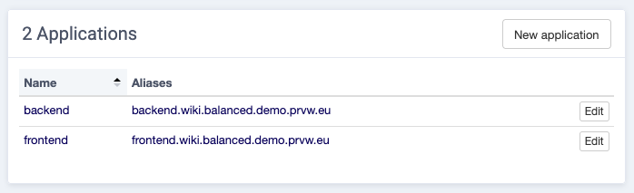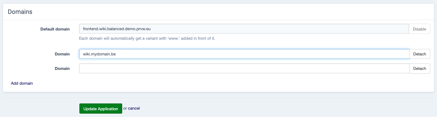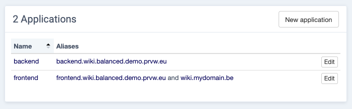 For this example we want to add wiki.mydomain.be as an alias to the frontend application.