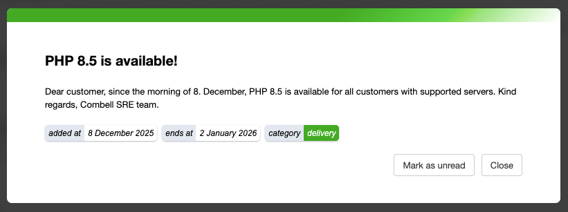 Notification center is used to inform customers about new features in Sock, planned maintenances and more.