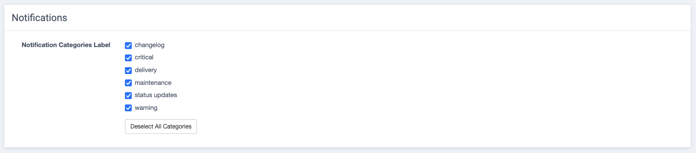 Select or deselect the desired notification categories in the Notifications widget and confirm with Save changes.