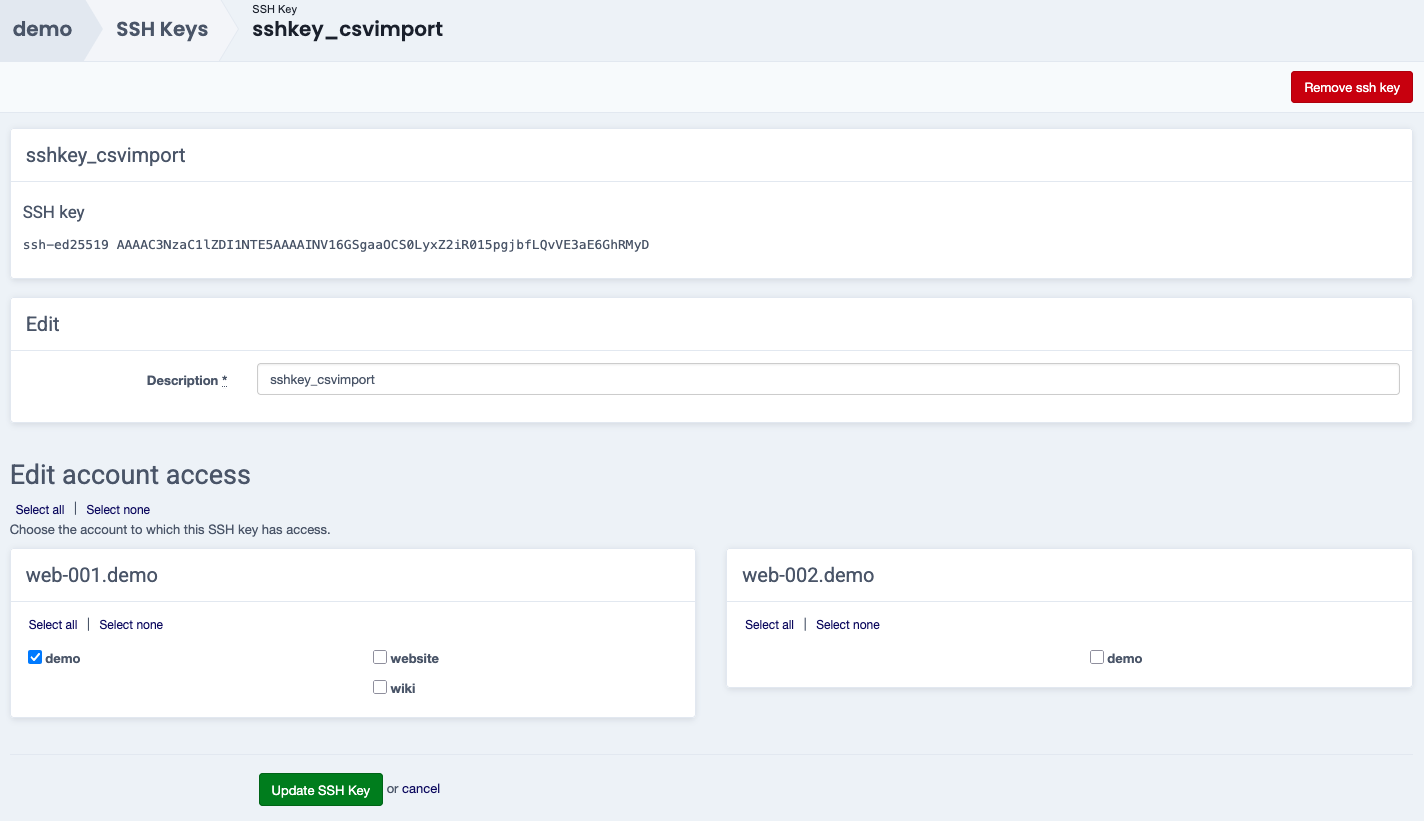 Confirm your changes with Update SSH key.
