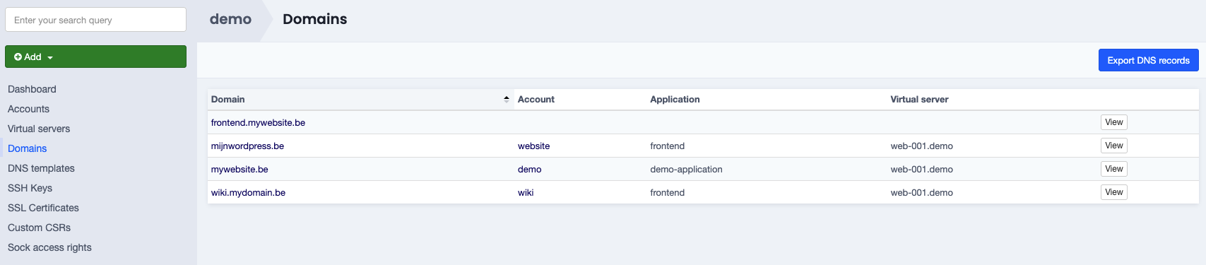 Navigate to the Domains menu on the left-hand side and select View for the domain you want to add a Let's Encrypt certificate.