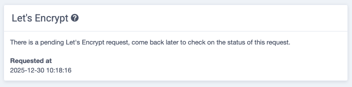 Sock will display the status of the request in the Let's Encrypt widget of the domain.